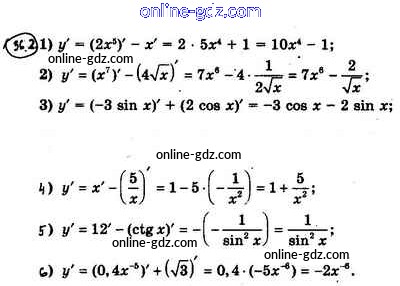 Готовые домашние задания по Алгебре за 10 класс Учебник Мерзляк, Номировский Алгоритм успеха Базовый уровень 2022 - §36. Правила вычисления производных 36.2