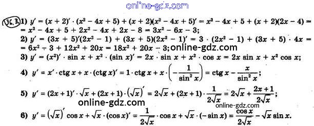 Готовые домашние задания по Алгебре за 10 класс Учебник Мерзляк, Номировский Алгоритм успеха Базовый уровень 2022 - §36. Правила вычисления производных 36.3