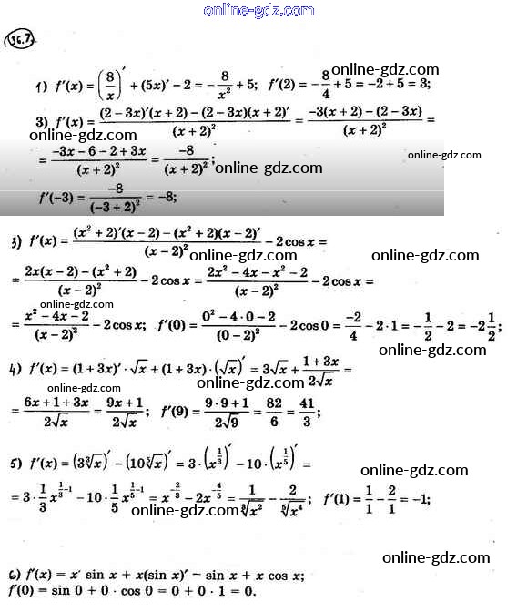 Готовые домашние задания по Алгебре за 10 класс Учебник Мерзляк, Номировский Алгоритм успеха Базовый уровень 2022 - §36. Правила вычисления производных 36.7