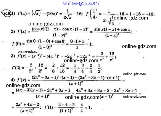 Готовые домашние задания по Алгебре за 10 класс Учебник Мерзляк, Номировский Алгоритм успеха Базовый уровень 2022 - §36. Правила вычисления производных 36.8