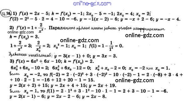 Готовые домашние задания по Алгебре за 10 класс Учебник Мерзляк, Номировский Алгоритм успеха Базовый уровень 2022 - §37. Уравнение касательной 37.16