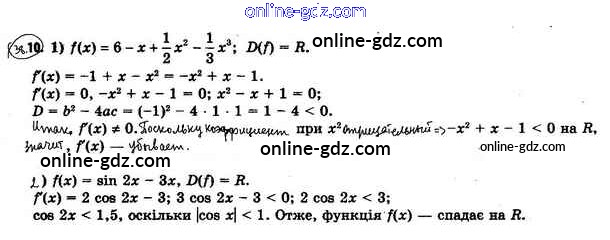 Готовые домашние задания по Алгебре за 10 класс Учебник Мерзляк, Номировский Алгоритм успеха Базовый уровень 2022 - §38. Признаки возрастания и убывания функции 38.10