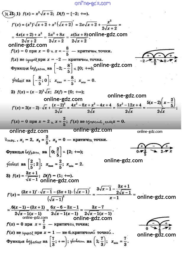 Готовые домашние задания по Алгебре за 10 класс Учебник Мерзляк, Номировский Алгоритм успеха Базовый уровень 2022 - §39. Точки экстремума функции 39.23