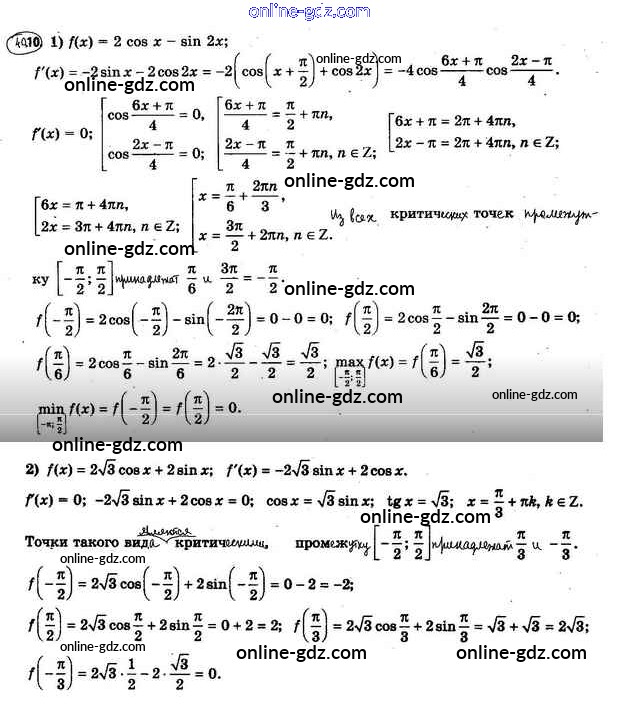Готовые домашние задания по Алгебре за 10 класс Учебник Мерзляк, Номировский Алгоритм успеха Базовый уровень 2022 - §40. Применение производной при нахождении наибольшего и наименьшего значений функции 40.10