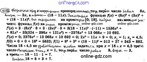 Готовые домашние задания по Алгебре за 10 класс Учебник Мерзляк, Номировский Алгоритм успеха Базовый уровень 2022 - §40. Применение производной при нахождении наибольшего и наименьшего значений функции 40.12