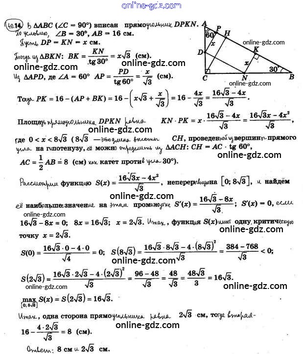 Готовые домашние задания по Алгебре за 10 класс Учебник Мерзляк, Номировский Алгоритм успеха Базовый уровень 2022 - §40. Применение производной при нахождении наибольшего и наименьшего значений функции 40.14