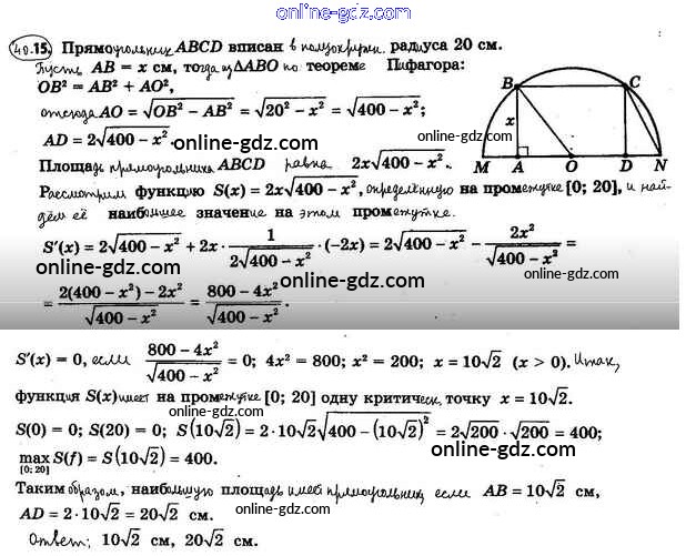 Готовые домашние задания по Алгебре за 10 класс Учебник Мерзляк, Номировский Алгоритм успеха Базовый уровень 2022 - §40. Применение производной при нахождении наибольшего и наименьшего значений функции 40.15