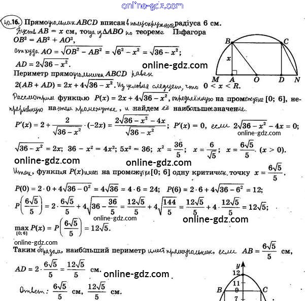 Готовые домашние задания по Алгебре за 10 класс Учебник Мерзляк, Номировский Алгоритм успеха Базовый уровень 2022 - §40. Применение производной при нахождении наибольшего и наименьшего значений функции 40.16