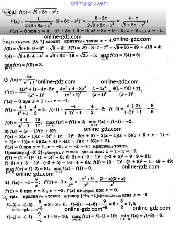 Готовые домашние задания по Алгебре за 10 класс Учебник Мерзляк, Номировский Алгоритм успеха Базовый уровень 2022 - §40. Применение производной при нахождении наибольшего и наименьшего значений функции 40.4