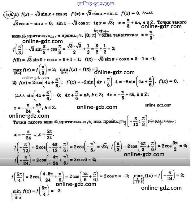 Готовые домашние задания по Алгебре за 10 класс Учебник Мерзляк, Номировский Алгоритм успеха Базовый уровень 2022 - §40. Применение производной при нахождении наибольшего и наименьшего значений функции 40.6