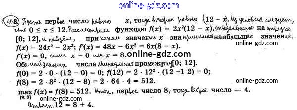Готовые домашние задания по Алгебре за 10 класс Учебник Мерзляк, Номировский Алгоритм успеха Базовый уровень 2022 - §40. Применение производной при нахождении наибольшего и наименьшего значений функции 40.8