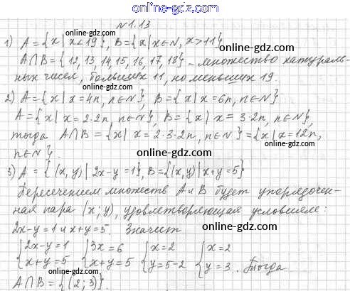 Готовые домашние задания по Алгебре за 10 класс Учебник Мерзляк, Номировский Алгоритм успеха Углубленный уровень 2019 - §1. Множества. Операции над множествами 1.13