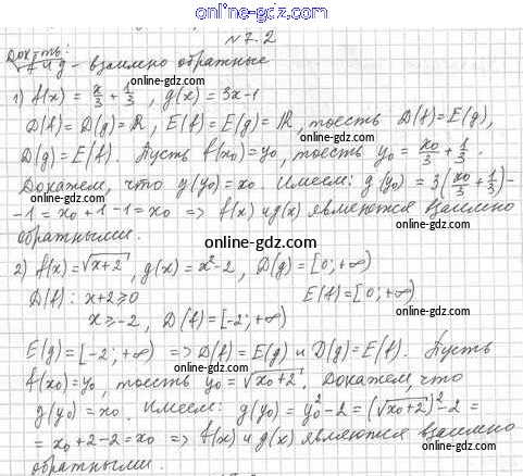 Готовые домашние задания по Алгебре за 10 класс Учебник Мерзляк, Номировский Алгоритм успеха Углубленный уровень 2019 - §7. Обратная функция 7.2