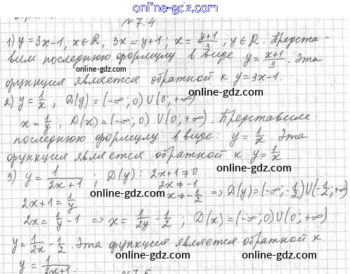 Готовые домашние задания по Алгебре за 10 класс Учебник Мерзляк, Номировский Алгоритм успеха Углубленный уровень 2019 - §7. Обратная функция 7.4