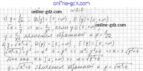 Готовые домашние задания по Алгебре за 10 класс Учебник Мерзляк, Номировский Алгоритм успеха Углубленный уровень 2019 - §7. Обратная функция 7.7