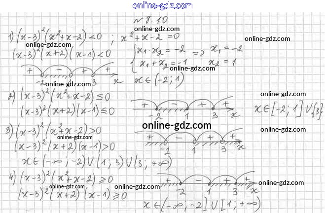 Готовые домашние задания по Алгебре за 10 класс Учебник Мерзляк, Номировский Алгоритм успеха Углубленный уровень 2019 - §8. Метод интервалов 8.10