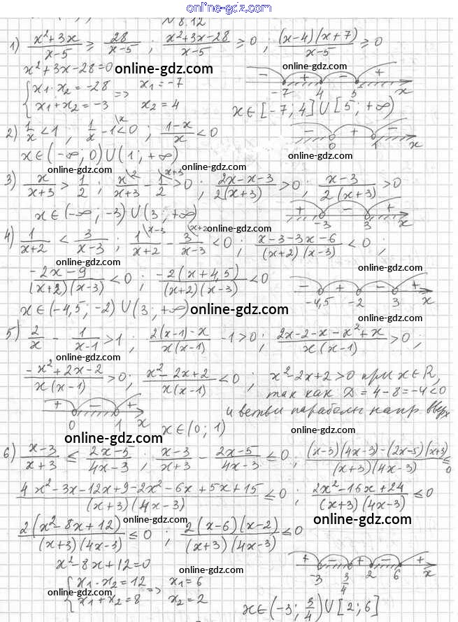 Готовые домашние задания по Алгебре за 10 класс Учебник Мерзляк, Номировский Алгоритм успеха Углубленный уровень 2019 - §8. Метод интервалов 8.12