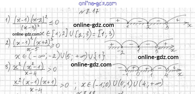 Готовые домашние задания по Алгебре за 10 класс Учебник Мерзляк, Номировский Алгоритм успеха Углубленный уровень 2019 - §8. Метод интервалов 8.17