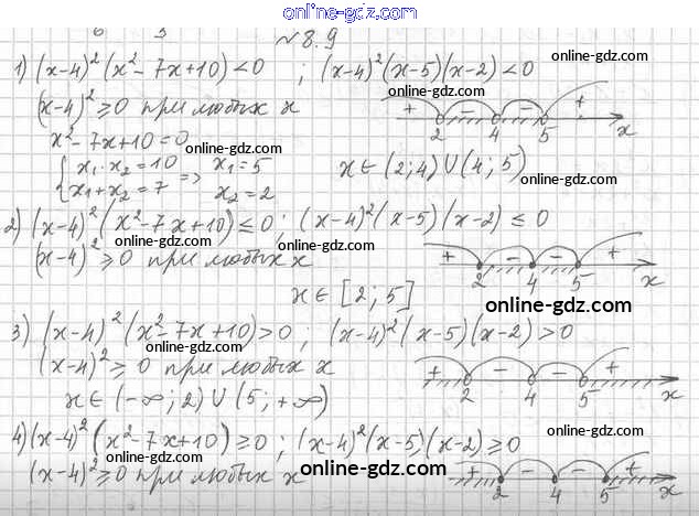 Готовые домашние задания по Алгебре за 10 класс Учебник Мерзляк, Номировский Алгоритм успеха Углубленный уровень 2019 - §8. Метод интервалов 8.9