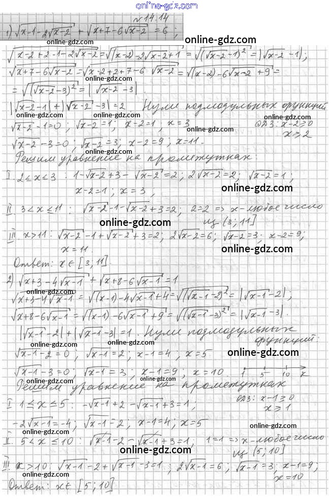 Готовые домашние задания по Алгебре за 10 класс Учебник Мерзляк, Номировский Алгоритм успеха Углубленный уровень 2019 - §14. Иррациональные уравнения 14.14