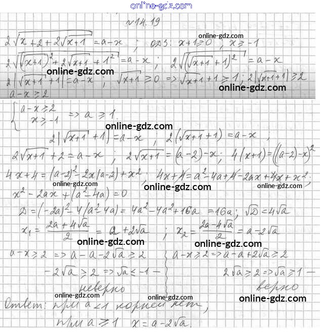 Готовые домашние задания по Алгебре за 10 класс Учебник Мерзляк, Номировский Алгоритм успеха Углубленный уровень 2019 - §14. Иррациональные уравнения 14.19