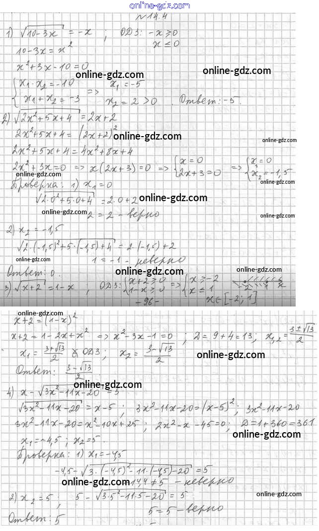 Готовые домашние задания по Алгебре за 10 класс Учебник Мерзляк, Номировский Алгоритм успеха Углубленный уровень 2019 - §14. Иррациональные уравнения 14.4