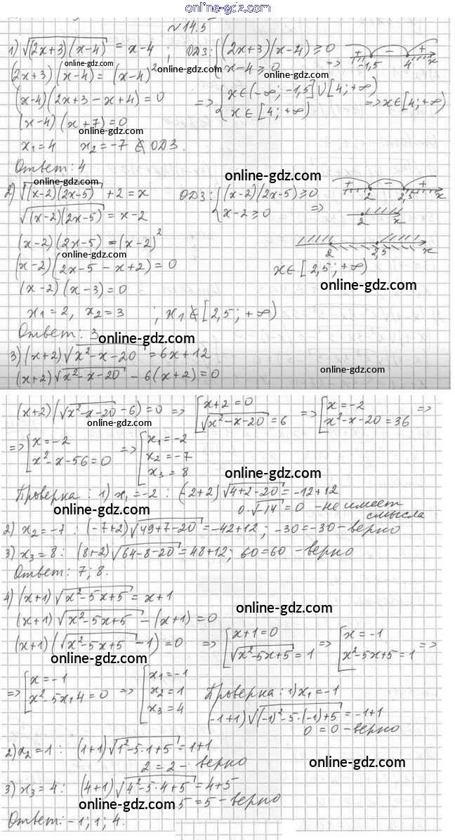 Готовые домашние задания по Алгебре за 10 класс Учебник Мерзляк, Номировский Алгоритм успеха Углубленный уровень 2019 - §14. Иррациональные уравнения 14.5