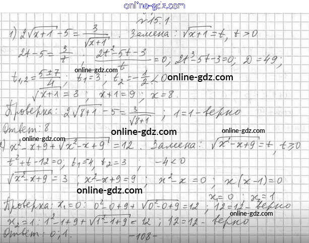 Готовые домашние задания по Алгебре за 10 класс Учебник Мерзляк, Номировский Алгоритм успеха Углубленный уровень 2019 - §15. Различные приёмы решения иррациональных уравнений и их систем 15.1