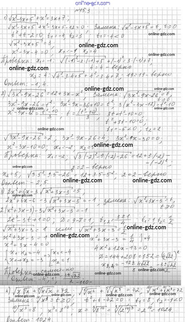 Готовые домашние задания по Алгебре за 10 класс Учебник Мерзляк, Номировский Алгоритм успеха Углубленный уровень 2019 - §15. Различные приёмы решения иррациональных уравнений и их систем 15.3