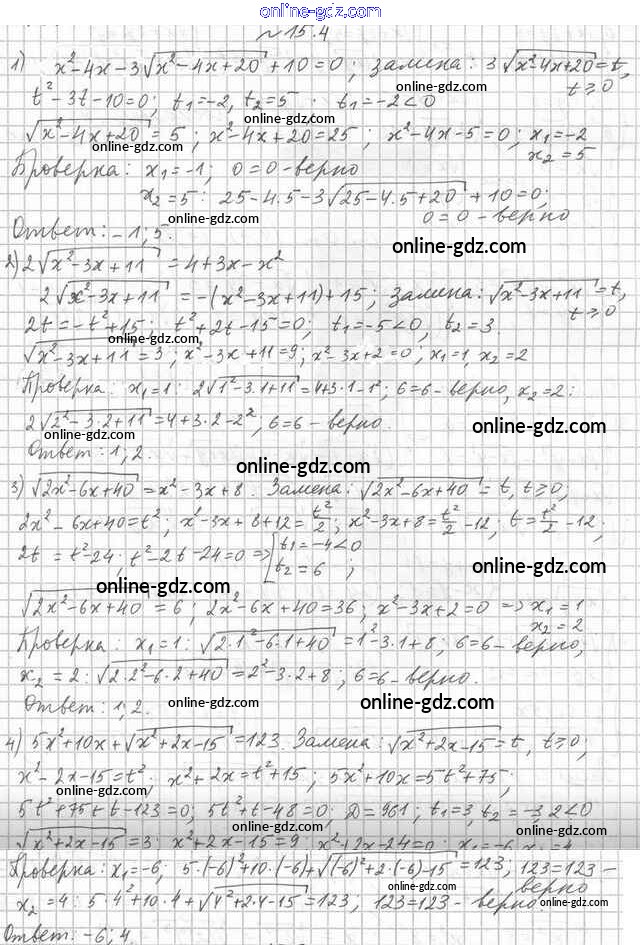 Готовые домашние задания по Алгебре за 10 класс Учебник Мерзляк, Номировский Алгоритм успеха Углубленный уровень 2019 - §15. Различные приёмы решения иррациональных уравнений и их систем 15.4