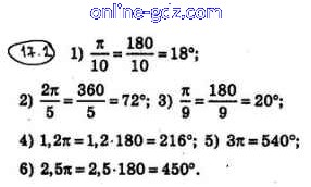 Готовые домашние задания по Алгебре за 10 класс Учебник Мерзляк, Номировский Алгоритм успеха Углубленный уровень 2019 - §17. Радианная мера угла 17.2