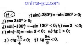 Готовые домашние задания по Алгебре за 10 класс Учебник Мерзляк, Номировский Алгоритм успеха Углубленный уровень 2019 - §19. Знаки значений тригонометрических функций. Чётность и нечётность тригонометрических функций 19.1