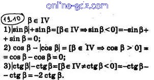 Готовые домашние задания по Алгебре за 10 класс Учебник Мерзляк, Номировский Алгоритм успеха Углубленный уровень 2019 - §19. Знаки значений тригонометрических функций. Чётность и нечётность тригонометрических функций 19.10