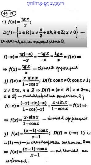 Готовые домашние задания по Алгебре за 10 класс Учебник Мерзляк, Номировский Алгоритм успеха Углубленный уровень 2019 - §19. Знаки значений тригонометрических функций. Чётность и нечётность тригонометрических функций 19.13