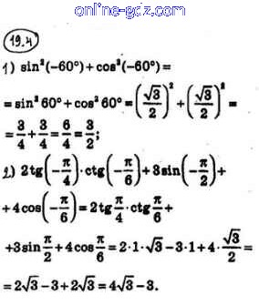 Готовые домашние задания по Алгебре за 10 класс Учебник Мерзляк, Номировский Алгоритм успеха Углубленный уровень 2019 - §19. Знаки значений тригонометрических функций. Чётность и нечётность тригонометрических функций 19.4