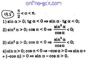 Готовые домашние задания по Алгебре за 10 класс Учебник Мерзляк, Номировский Алгоритм успеха Углубленный уровень 2019 - §19. Знаки значений тригонометрических функций. Чётность и нечётность тригонометрических функций 19.5