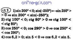 Готовые домашние задания по Алгебре за 10 класс Учебник Мерзляк, Номировский Алгоритм успеха Углубленный уровень 2019 - §19. Знаки значений тригонометрических функций. Чётность и нечётность тригонометрических функций 19.8