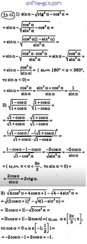 Готовые домашние задания по Алгебре за 10 класс Учебник Мерзляк, Номировский Алгоритм успеха Углубленный уровень 2019 - §23. Основные соотношения между тригонометрическими функциями одного и того же аргумента 23.12