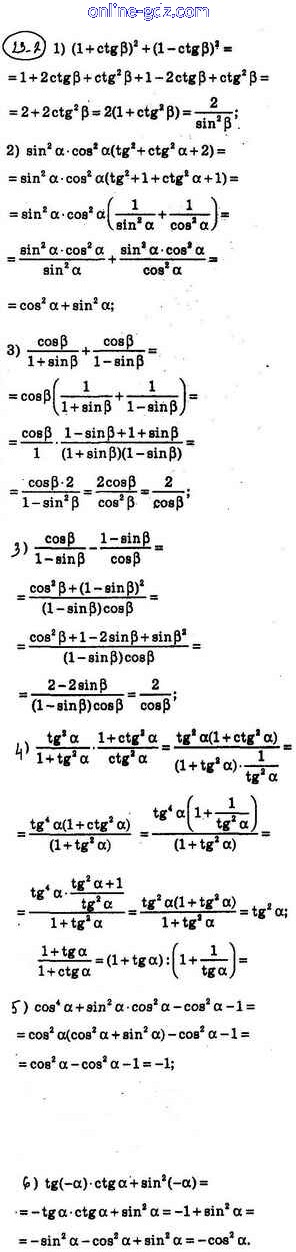 Готовые домашние задания по Алгебре за 10 класс Учебник Мерзляк, Номировский Алгоритм успеха Углубленный уровень 2019 - §23. Основные соотношения между тригонометрическими функциями одного и того же аргумента 23.2
