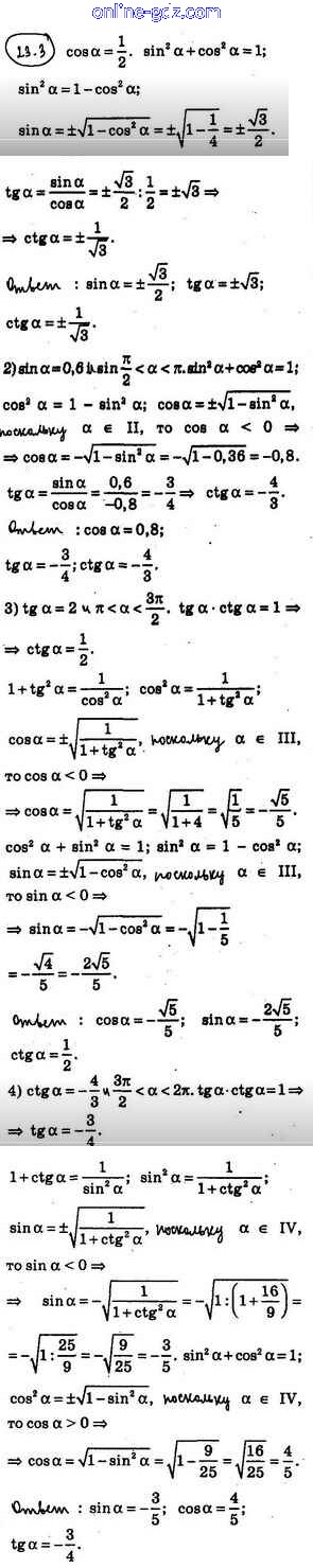 Готовые домашние задания по Алгебре за 10 класс Учебник Мерзляк, Номировский Алгоритм успеха Углубленный уровень 2019 - §23. Основные соотношения между тригонометрическими функциями одного и того же аргумента 23.3