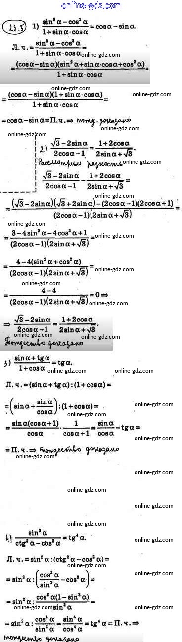 Готовые домашние задания по Алгебре за 10 класс Учебник Мерзляк, Номировский Алгоритм успеха Углубленный уровень 2019 - §23. Основные соотношения между тригонометрическими функциями одного и того же аргумента 23.5
