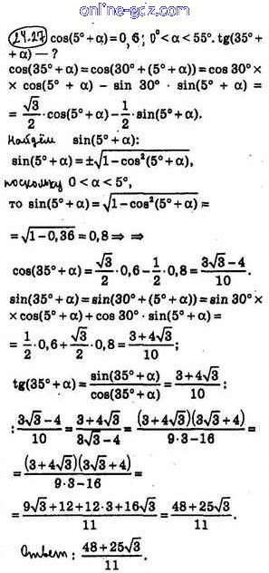 Готовые домашние задания по Алгебре за 10 класс Учебник Мерзляк, Номировский Алгоритм успеха Углубленный уровень 2019 - §24. Формулы сложения 24.27
