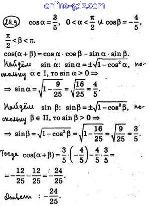 Готовые домашние задания по Алгебре за 10 класс Учебник Мерзляк, Номировский Алгоритм успеха Углубленный уровень 2019 - §24. Формулы сложения 24.9