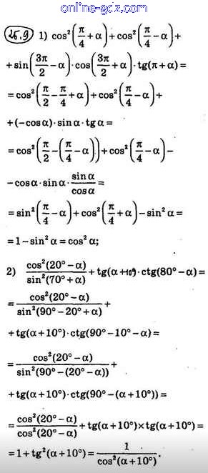 Готовые домашние задания по Алгебре за 10 класс Учебник Мерзляк, Номировский Алгоритм успеха Углубленный уровень 2019 - §25. Формулы приведения 25.9