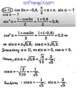Готовые домашние задания по Алгебре за 10 класс Учебник Мерзляк, Номировский Алгоритм успеха Углубленный уровень 2019 - §26. Формулы двойного, тройного и половинного углов 26.13