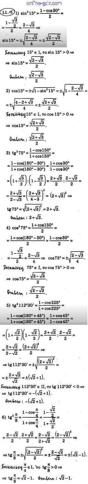 Готовые домашние задания по Алгебре за 10 класс Учебник Мерзляк, Номировский Алгоритм успеха Углубленный уровень 2019 - §26. Формулы двойного, тройного и половинного углов 26.15