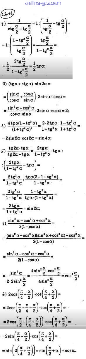 Готовые домашние задания по Алгебре за 10 класс Учебник Мерзляк, Номировский Алгоритм успеха Углубленный уровень 2019 - §26. Формулы двойного, тройного и половинного углов 26.16