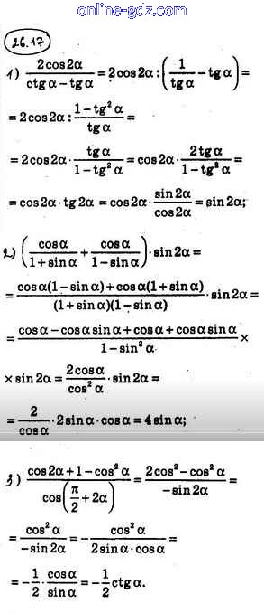 Готовые домашние задания по Алгебре за 10 класс Учебник Мерзляк, Номировский Алгоритм успеха Углубленный уровень 2019 - §26. Формулы двойного, тройного и половинного углов 26.17