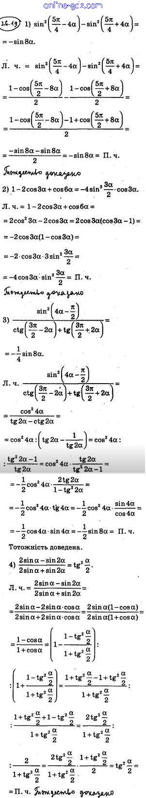 Готовые домашние задания по Алгебре за 10 класс Учебник Мерзляк, Номировский Алгоритм успеха Углубленный уровень 2019 - §26. Формулы двойного, тройного и половинного углов 26.19