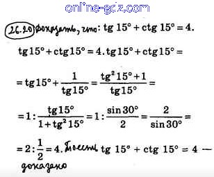 Готовые домашние задания по Алгебре за 10 класс Учебник Мерзляк, Номировский Алгоритм успеха Углубленный уровень 2019 - §26. Формулы двойного, тройного и половинного углов 26.20